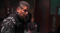 En tant que Ford, Francks a également eu droit à un gros morceau d'action dans son dernier épisode en tant que titulaire de la série, en grande partie grâce à l'ordonnance construite par Bridget McGuire et l'équipe de conception de la production. "Nous avons construit le canon à rail pour cet épisode, le canon que nous tirons depuis le balcon. Tous les garçons se sont enthousiasmés pour ça", s'amuse McGuire. "Nous l'avons rendu interactif - il tournait sur lui-même et la barre se déplaçait de haut en bas, il y avait plein de boutons et un écran dessus, alors tout le monde l'a adoré ! Nous avons cherché sur Internet des références à des canons à rail et à d'autres grands canons mobiles, et nous les avons combinés et inventés. Ce n'est qu'un simulacre, mais il est basé sur des éléments réels, de sorte qu'il ressemble à quelque chose qui pourrait fonctionner. Ce n'est pas une pure fantaisie, c'est conçu pour ressembler à quelque chose qui pourrait être réel."