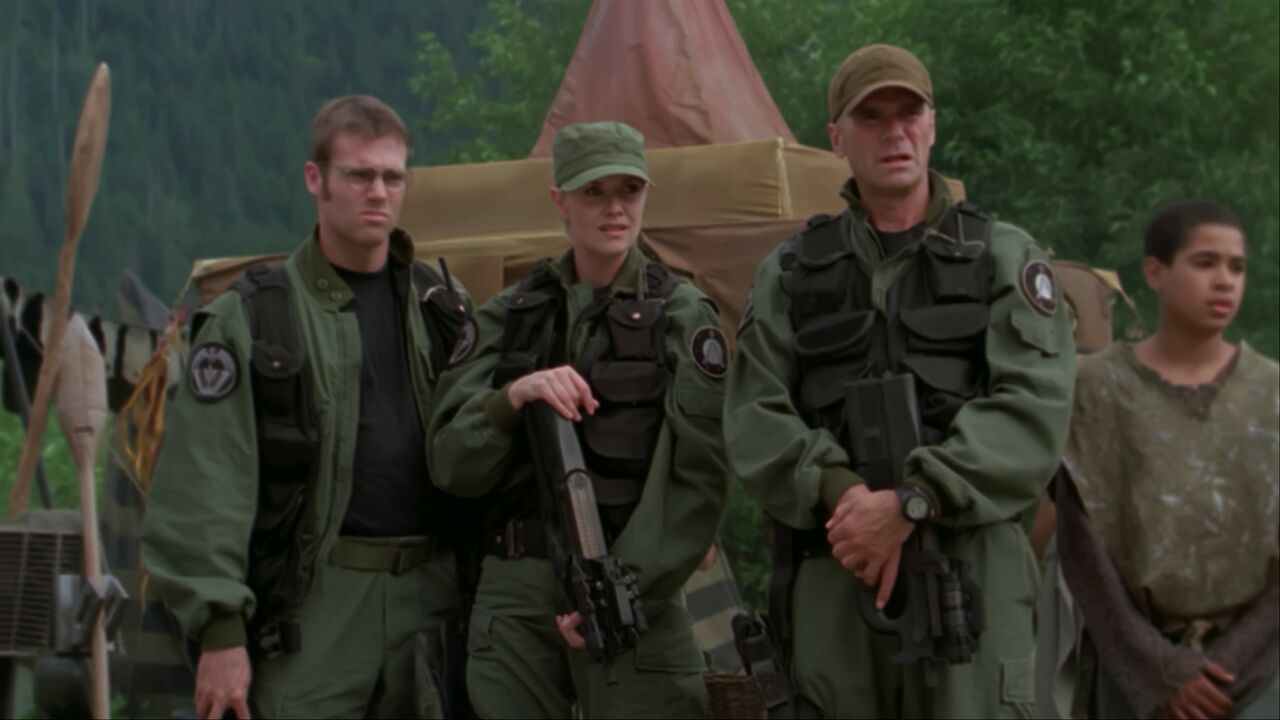 [10:01] - Un vieil homme passant derrière les membres de SG-1 disparaît sur le plan suivant.