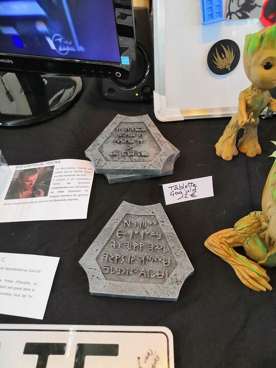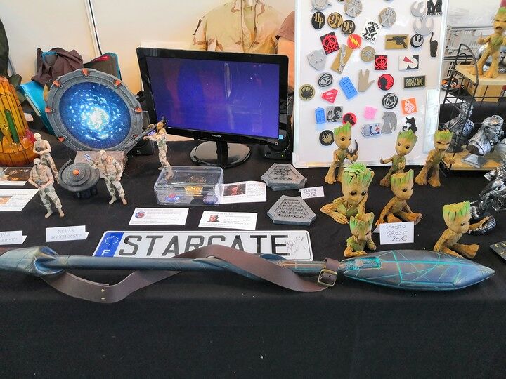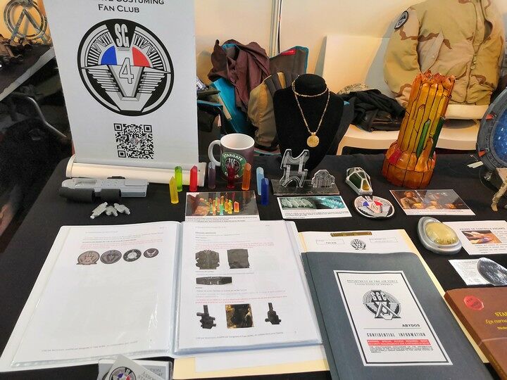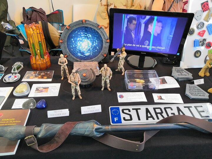 Déjà présente à l'occasion de plusieurs événements aux quatre coins de la France, l'association nîmoise des Geeks du Sud, experte dans les expositions de science-fiction et dans les objets imprimés en 3D, a pu présenter au public de nombreux produits dérivés tirés de la série tels que des petits pyramides d'inspiration goa'uld, des portes-clefs ou encore des reproductions de tablettes goa'ulds.