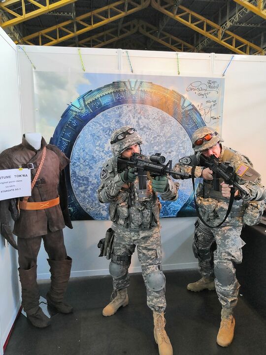 Parmi eux, beaucoup se sont rendu à Lyon en emportant dans leur sac un cosplay tiré de l'univers Stargate. Ainsi, si vous avez vous-même arpenté les allées de la convention, il est possible que vous soyez tombé sur un militaire du SGC portant une lance jaffa, une Vala Mal Doran, plusieurs sosies du lieutenant-colonel Carter, une dirigeante d'Atlantis ou même des équipes SG en tenue camouflage vert ou désert.