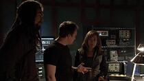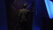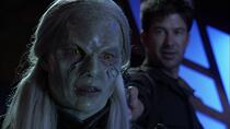 On dit souvent que le lieu où se déroule un épisode est un personnage supplémentaire de l'histoire, et c'est certainement le cas dans "Les Voyageurs". Comme l'a noté Mullie, la plupart des cultures visitées par l'équipe Atlantis sont nécessairement moins avancées technologiquement que l'équipe de la Terre, et sont aussi généralement basées sur des planètes. En faisant du peuple de Larrin une société vivant dans l'espace, Mullie a créé l'opportunité de voir quelque chose d'un peu différent. En plus de donner à Sheppard un coéquipier aussi doué que lui sur le plan technologique, ce qui permet d'établir une relation différente de celle que nous avons déjà vue avec le colonel, cela a également permis au département artistique de s'amuser un peu. "C'était une excuse pour construire un décor cool", admettent le scénariste, "et c'est la deuxième chose qui me vient à l'esprit à propos de cet épisode. Le décor du vaisseau des Voyageurs est l'un de mes préférés. Il s'agissait en fait d'un simple couloir avec une petite pièce à une extrémité (la cellule) et une pièce plus grande à l'autre (la pièce où Sheppard rencontre Larrin et lui parle). En fait, si je ne me trompe pas, il s'agissait d'une modification du décor construit à l'origine pour l'épisode 'Ames en détresse' de la troisième saison."