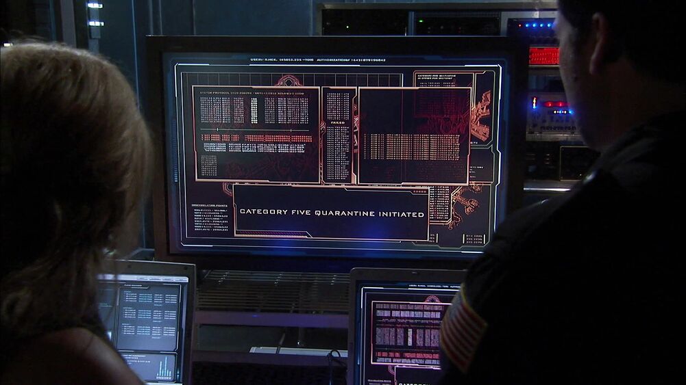 Plus tard, suite à la mise à jour du programme de quarantaine d'Atlantis, une violente tempête ionosphérique déclencha le verrouillage complet de la cité, isolant la majeure partie des membres de l'expédition. Alors que le docteur McKay se retrouva bloqué dans le laboratoire de botanique en compagnie de Katie Brown sans accès aux contrôles de la cité, le colonel Sheppard, isolé avec Teyla enceinte, décida d'escalader la tour centrale sur quatre étages jusqu'à la salle de contrôle en passant par l'extérieur. Néanmoins, son action fut perçue comme une rupture de quarantaine par la cité et déclencha un compte à rebours d'autodestruction. Néanmoins, le docteur Zelenka fut capable d'atteindre la salle des générateurs et de relancer les systèmes de la cité pour annuler l'autodestruction et la mise en quarantaine.