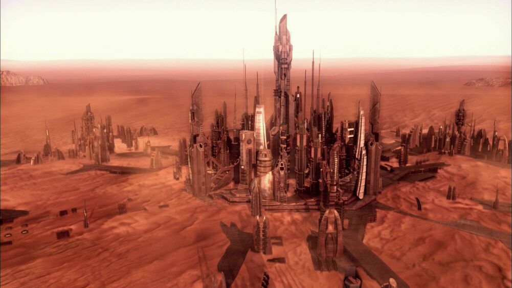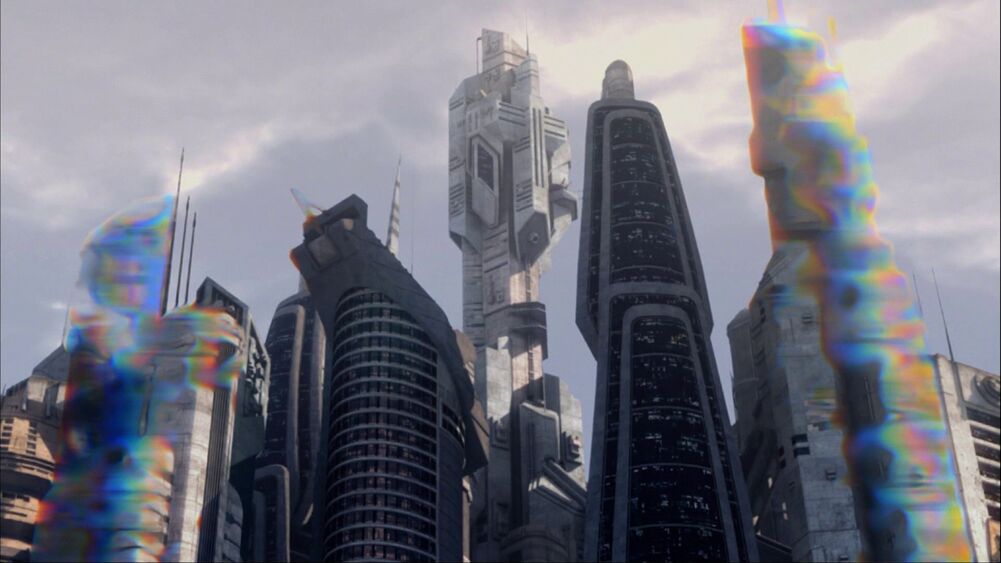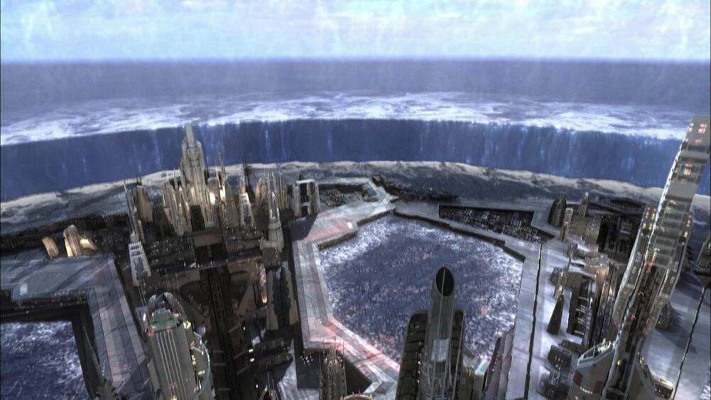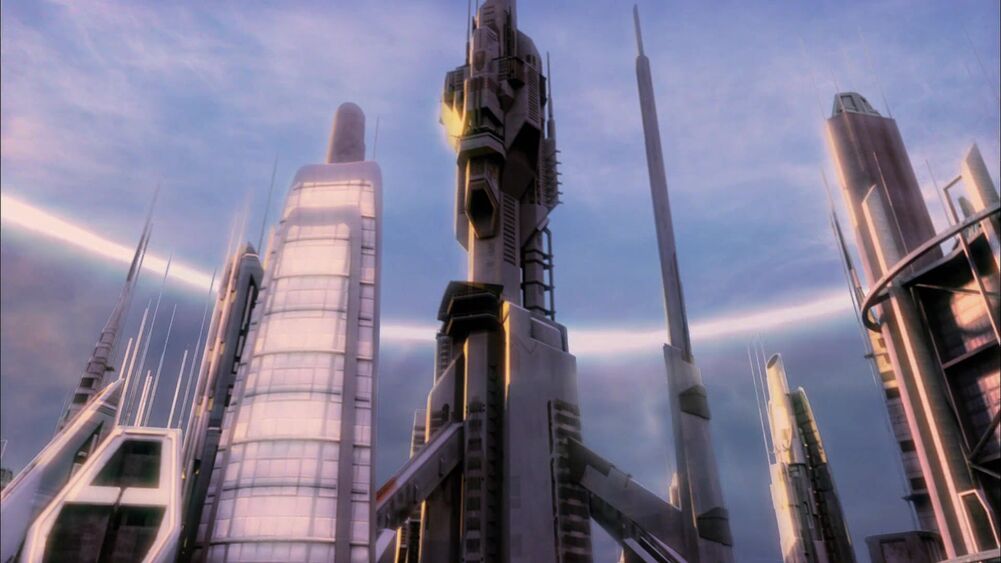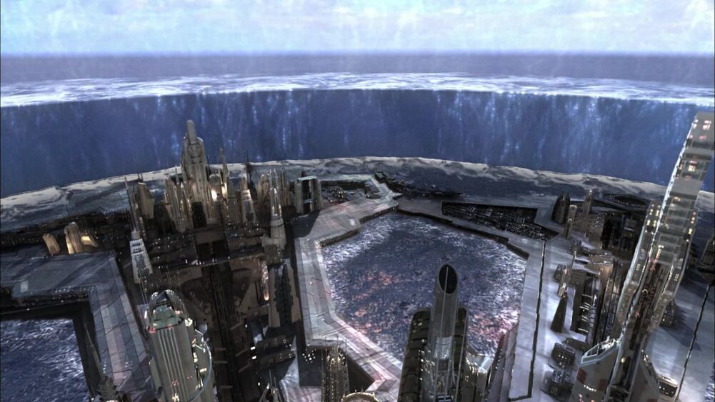 À noter que certains de ces bâtiments constituant la ville intérieure sont directement reliés à la tour centrale par d'immenses piliers de soutènement qui permettent de renforcer la structure de la cité tout entière.