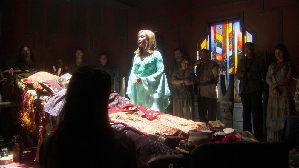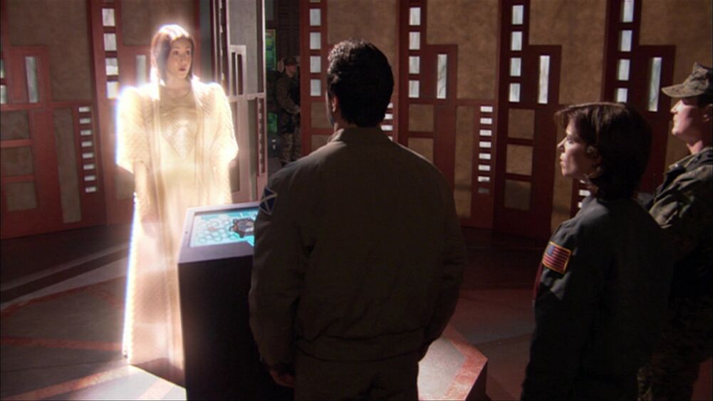 Quelque temps plus tard, les membres de l'équipe SG-1 voyagèrent sur Atlantis à bord de l'Odyssée dans le but d'ouvrir la superporte depuis la galaxie de Pégase grâce à une porte des étoiles alimentée par l'énergie d'un trou noir. Alors que le docteur McKay fut sollicité pour aider le colonel Carter, le docteur Jackson et Vala Mal Doran restèrent sur Atlantis pour effectuer des recherches dans la base de données de la cité par l'intermédiaire de l'hologramme dans l'espoir de découvrir l'emplacement du Sangréal. Ils furent alors aidés malgré eux par Ganos Lal, aussi appelée la fée Morgane, qui leur fournit les coordonnées de Castiana et Sahal. Alors que l'archéologue terrien réussit à révéler la présence de l'être élevé sur Atlantis, celle-ci fut arrêtée par les Autres avant d'avoir pu fournir davantage d'informations aux membres de SG-1.