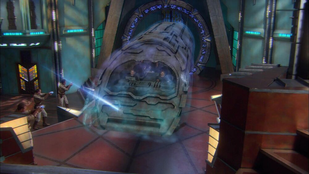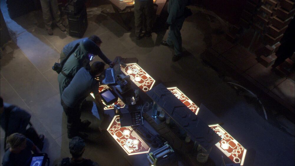 Néanmoins, le bouclier finit par céder avant d'avoir pu diffuser suffisamment d'énergie, provoquant la destruction de la salle de contrôle. Plus tard, Amélia Banks et son équipe de techniciens installèrent une salle de contrôle provisoire en dessous des zones accidentées puis transférèrent l'ensemble des systèmes sur des ordinateurs terriens. Néanmoins, une fois les communications de nouveau opérationnelles, Todd, à bord du Dédale, puis Katana Labrea contactèrent le colonel Sheppard pour obtenir des informations sur la destruction des portes des étoiles dans la galaxie et la localisation précise du dispositif Attero. Plus tard, après la destruction de l'avant-poste de Janus sur M6H-987, l'équipage du Dédale récupéra une porte des étoiles de l'ancien pont intergalactique qui fut alors installée dans la salle d'embarquement d'Atlantis.