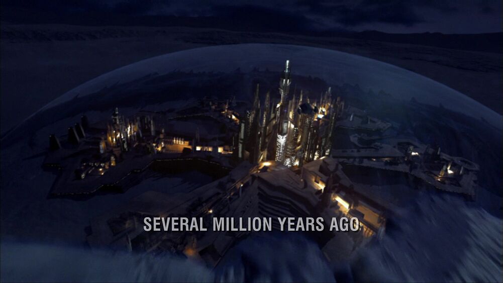 Bien qu'elle demeura abandonnée sous l'océan de Lantia pendant plus de 10 000 ans, cette cité fut découverte par les Terriens peu de temps après la bataille de l'Antarctique en 2004, et accueillit une expédition commandée à l'origine par le docteur Elizabeth Weir.