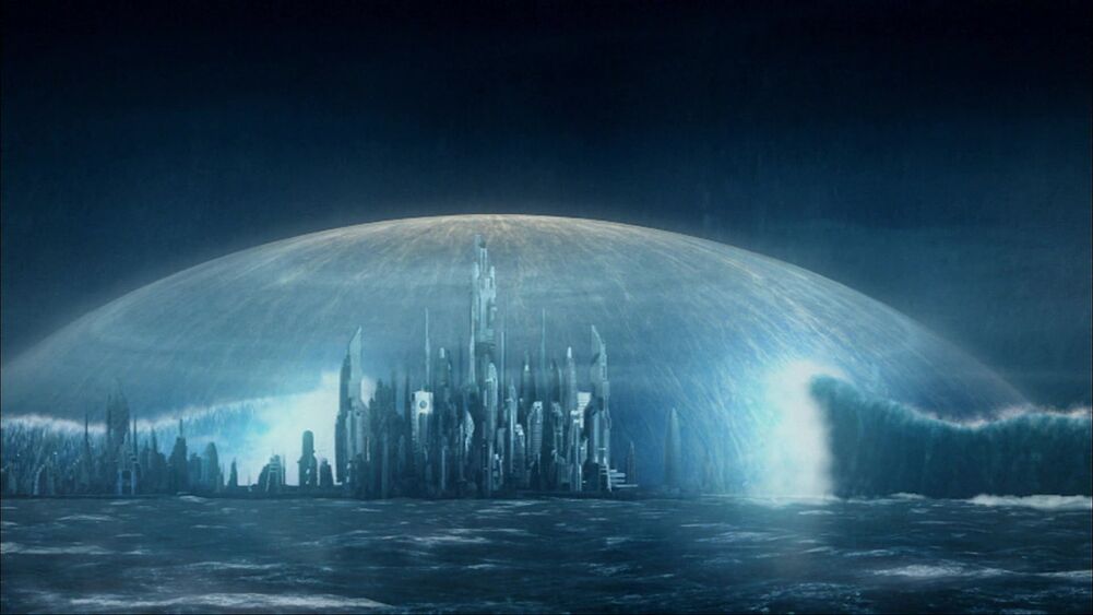 Néanmoins, en dépit de sa taille impressionnante, Atlantis demeure une structure relativement fragile qui nécessite obligatoirement un puissant bouclier énergétique pour être protégée d'éventuelles menaces extérieures telles que les bombardements orbitaux, les catastrophes météorologiques, ou les voyages interstellaires. L'absence de ce champ de force la rend par conséquent extrêmement vulnérable, la cité pouvant être facilement détruite en cas d'attaque ennemie.