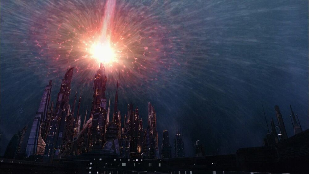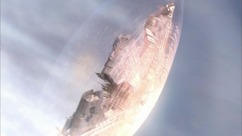 À noter que des tirs d'armes énergétiques particulièrement intenses sur le bouclier sont susceptibles d'exercer une force suffisamment importante pour modifier la trajectoire de la cité à travers l'espace à tel point que même ses amortisseurs inertiels ne peuvent pas compenser correctement la dérive stellaire.