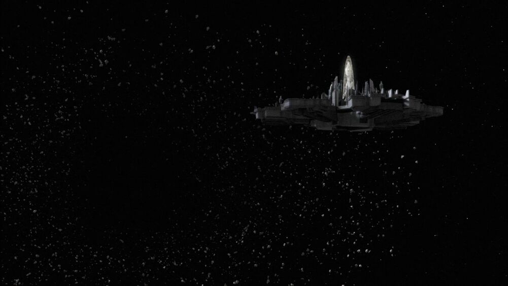 Cependant, quelques instants plus tard, les membres de l'équipe découvrirent que la cité d'Atlantis s'apprêtait à effleurer la partie haute d'une ceinture d'astéroïdes. Étant incapable d'étendre le bouclier par manque de puissance, le colonel Sheppard ordonna de rassembler l'ensemble du personnel de l'expédition possédant le gène des Anciens, et les briefa en leur demandant de pulvériser les astéroïdes à l'aide des drones pour ouvrir un passage suffisamment grand pour permettre de laisser passer la cité tout entière. Ainsi, une quinzaine de Jumpers décolla de la tour centrale d'Atlantis et se plaça en formation pour détruire le plus possible d'astéroïdes. Bien que les Jumpers réussirent à pulvériser un nombre important de débris spatiaux, certaines zones périphériques de la cité d'Atlantis furent sérieusement endommagées par les impacts.
