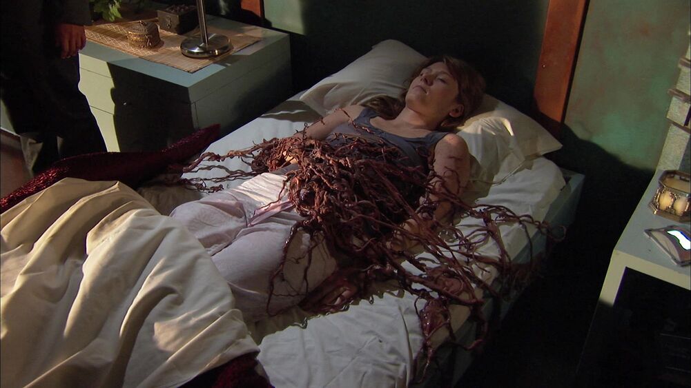 Cependant, quelques heures plus tard, le docteur Keller commença à subir les effets d'un agent pathogène wraith lorsque d'étranges excroissances sortirent de son corps, et fut transportée dans une salle d'isolement située dans l'une des tours de la cité. Au moment où le docteur Beckett parvint à identifier la présence de l'organisme extraterrestre dans le corps des membres de l'équipe Atlantis ayant participé à la mission sur P2S-445, le docteur Zelenka réalisa que l'organisme s'étendait sur trois niveaux, ainsi que dans les murs et les sols de la salle d'isolement tout en consumant et convertissant au passage les matériaux. De plus, il remarqua que l'organisme s'était enroulé autour du système électrique pour puiser de l'énergie et ainsi augmenter sa croissance.
