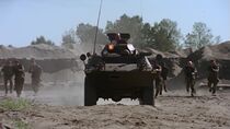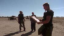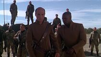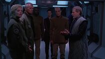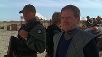 Néanmoins, au moment où Jonas Quinn composa l'adresse de la Terre et activa la porte des étoiles, le commandant Kalfas et ses hommes firent irruption et les encerclèrent pour les empêcher, soit disant, de mener une invasion de Tagrea. Alors que Kalfas retint Teal'c, Jonas, Tarek Solamon et les ouvriers tagreans prisonniers près de la porte des étoiles, le président Ashwan, furieux devant l'attitude de l'officier militaire, se retrouva toutefois impuissant face à la situation, celui-ci ne pouvant s'opposer au commandant des forces armées de Tagrea. Le major Carter suggéra alors d'utiliser le Prométhée dans le but d'effectuer une démonstration de force pour impressionner les troupes de Kalfas et les forcer à déposer leurs armes dans l'espoir de libérer les coéquipiers.