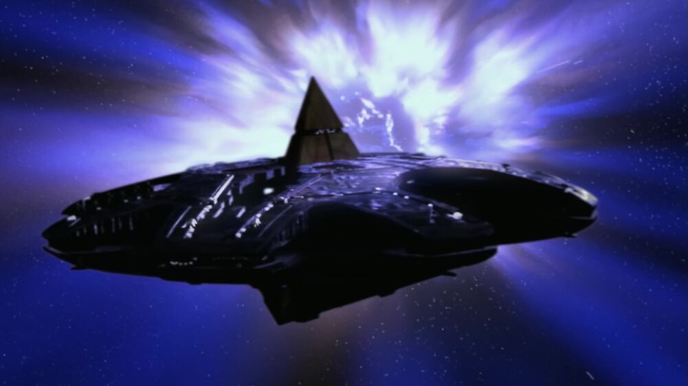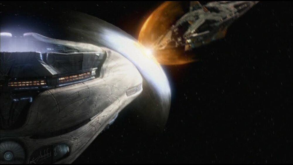 Néanmoins, l'onde de choc de la supernova provoqua une distorsion spatiale qui propulsa le vaisseau-mère goa'uld dans une galaxie inconnue située à plus de 4 millions d'années-lumière de son point d'origine. Cependant, à peine arrivé au sein de cette région inexplorée de l'Univers, le vaisseau amiral d'Apophis émergea à son tour de l'hyperespace et fit alors face à celui des membres de l'équipe SG-1. Alors que tout semblait perdu, un appareil extraterrestre inconnu contrôlé par les Réplicateurs fit irruption et ouvrit le feu sur le vaisseau amiral d'Apophis. Jacob profita alors de cette diversion pour s'enfuir et cacher le Ha'tak dans la chromosphère d'une géante bleue située tout proche afin que les radiations puissent perturber les détecteurs des appareils ennemis, et devenir ainsi invisible auprès de leurs radars.