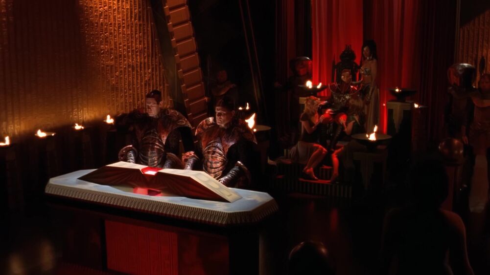 Après avoir rétabli les moteurs d'hyperpropulsion du vaisseau-mère de classe Ha'tak, les membres de SG-1 détectèrent un vaisseau-cargo piloté par Teal'c et accueillirent leur coéquipier à bord sans se douter que celui-ci avait subi un lavage de cerveau, permettant à Apophis et sa garde personnelle de prendre possession du vaisseau-mère de Cronos. Alors que SG-1 fut emprisonnée par Teal'c, les Jaffas d'Apophis entrèrent les coordonnées de Delmak dans l'ordinateur du vaisseau-mère de Cronos et utilisa toute la puissance disponible pour passer en hyperespace. Cependant, une poignée de Réplicateurs infiltra le vaisseau-mère de classe Ha'tak et commença à se répliquer en grand nombre. Les Jaffas d'Apophis perdirent alors le contrôle du vaisseau-mère et celui-ci sortit subitement de l'hyperespace.