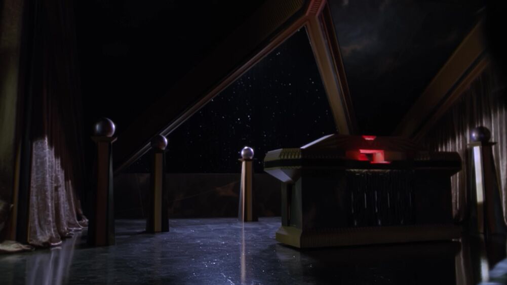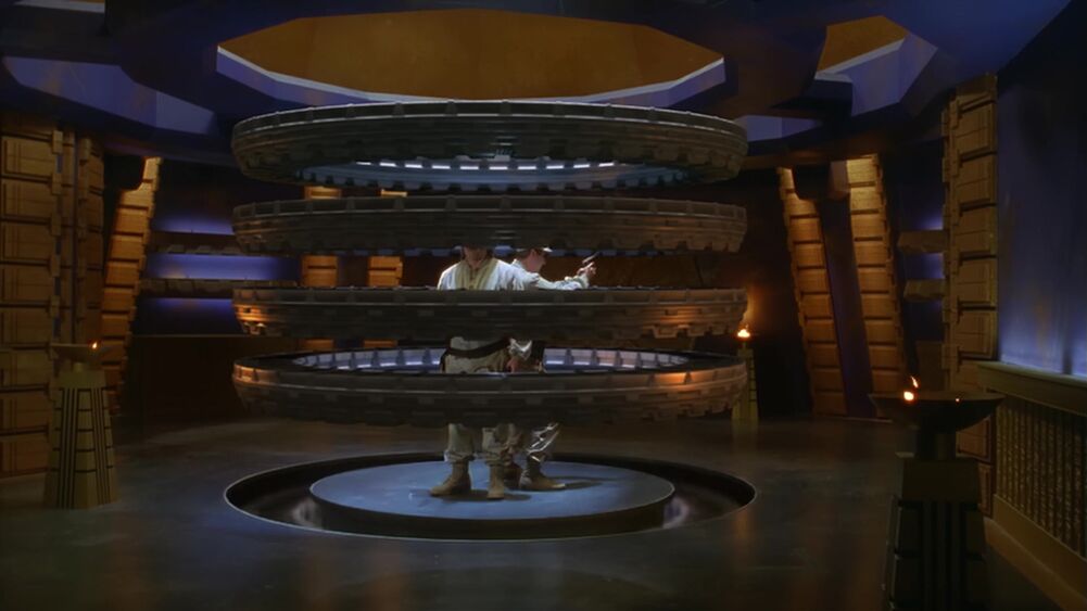 Fermé par une porte coulissante, cet ordinateur central peut être consulté grâce à un panneau de contrôle sous forme de pilier placé à l'entrée de la pièce. Ce terminal composé de multiples tiroirs à cristaux permet d'accéder facilement aux informations et peut être raccordé à un ordinateur terrien via une interface de commande.