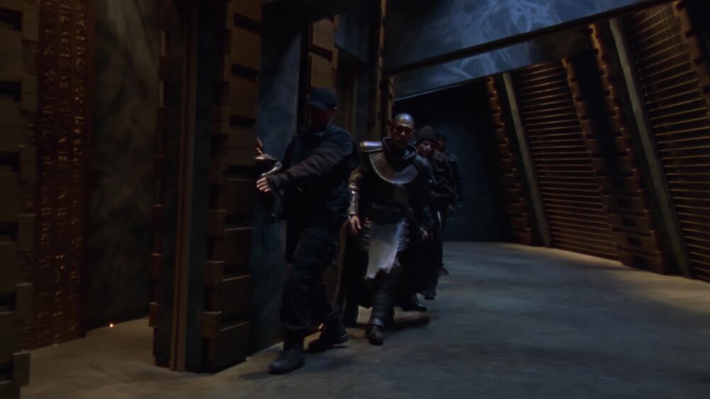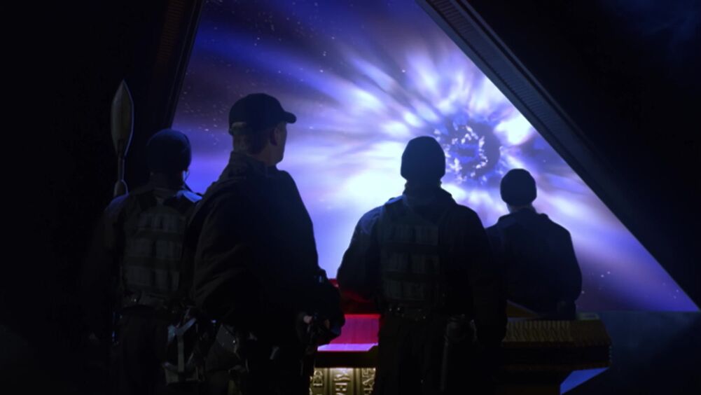 Arrivés au sein du vaisseau-mère de classe Ha'tak, le colonel Mitchell et son équipe localisèrent rapidement la soute abritant les portes des étoiles, mais furent stupéfaits de découvrir une douzaine d'entre elles, ainsi que leur DHD. Au moment où ils placèrent des balises subspatiales sur les dispositifs de transport, trois autres Ha'taks appartenant à l'Alliance lucienne émergèrent de l'hyperespace et ciblèrent le vaisseau de Ba'al. Bien que Netan somma le Goa'uld de se rendre, celui-ci refusa catégoriquement et parvint à activer ses boucliers malgré les tirs ennemis, empêchant l'équipage de l'Odyssée de téléporter SG-1. Alors que cette dernière utilisa une des portes des étoiles pour s'enfuir, le colonel Emerson et ses hommes réussirent à téléporter les portes au moment où les trois Ha'taks luciens détruisirent l'appareil de Ba'al.