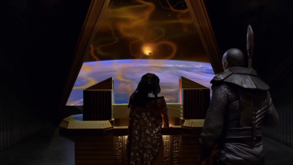 Plusieurs siècles plus tard, suite à la création du programme porte des étoiles au cours de l'année 1997, le colonel O'Neill et Teal'c décidèrent de demeurer sur la planète Hanka peu de temps après la mort de l'ensemble de ses habitants, hormis une petite fille appelée Cassandra, pour observer un trou noir lors d'une éclipse solaire. Néanmoins, au cours de cet événement astronomique, le militaire terrien remarqua un halo lumineux et décida de réorienter le télescope vers celui-ci. C'est alors que les deux membres de SG-1 furent alors stupéfaits de découvrir un vaisseau-mère goa'uld de classe Ha'tak appartenant à la déesse Nirrti en orbite de la planète. Celui-ci déploya quelques instants plus tard plusieurs planeurs de la mort qui se dirigèrent vers leur position, les forçant à rejoindre au plus vite la Terre par la porte des étoiles.
