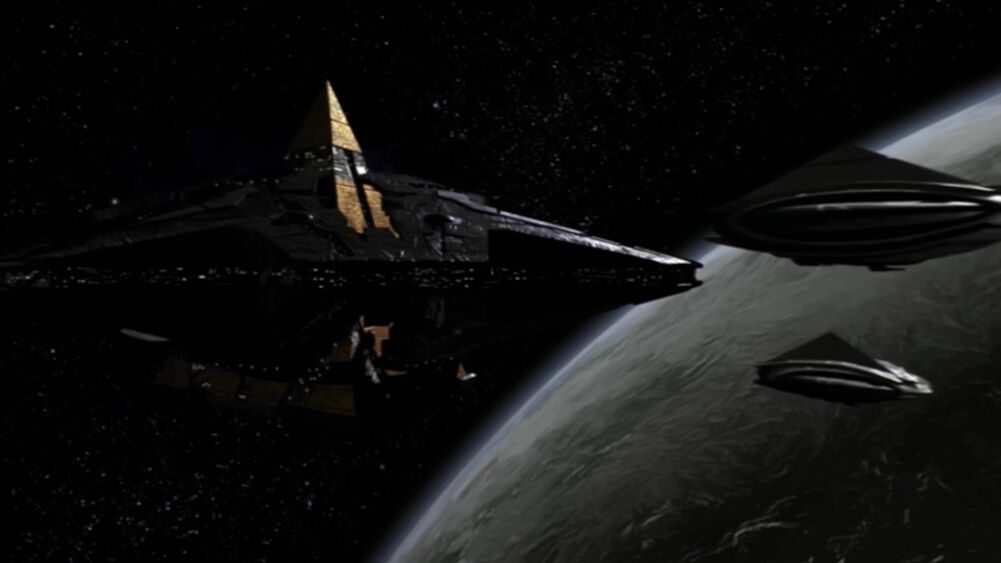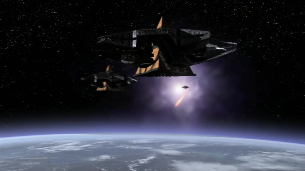 Quelque temps plus tard, suite à la capture du colonel O'Neill et Teal'c par Klorel, celui-ci sortit son vaisseau-mère de l'hyperespace à proximité de Saturne et rejoignit peu de temps après celui du seigneur Apophis. Les deux vaisseaux-mères furent alors repérés par les radars spatiaux de Cairn sur Terre et le sergent Harriman prévint le général Hammond de leur arrivée imminente en orbite de la planète. Plus tard, lorsque les membres de l'équipe SG-1 parvinrent à prendre le contrôle de la passerelle de commandement du vaisseau-mère goa'uld, ceux-ci se résignèrent à déclencher l'explosion du C-4 au moment où ils réalisèrent que le vaisseau-mère d'Apophis était également arrivé en orbite autour de la Terre, les obligeant à changer de stratégie pour empêcher l'attaque de la Terre par les Goa'ulds.
