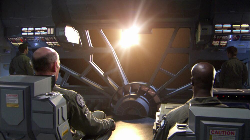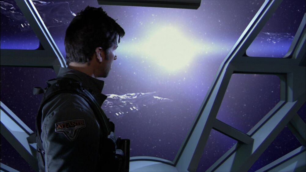 Quelques semaines plus tard, lorsque le pont intergalactique fut achevé, le Dédale, avec à son bord le docteur McKay, rejoignit la station spatiale intermédiaire encore en construction pour assister à l'essai de l'ouvrage technologique par le lieutenant-colonel Sheppard à l'aide d'un Jumper. Alors que ce dernier contacta l'équipage du vaisseau terrien dès son arrivée à la station spatiale intermédiaire et composa l'adresse de la Terre, le docteur Rodney McKay repéra à l'aide des détecteurs de proximité du Dédale un objet se déplaçant à une vitesse de 99,99 % de celle de la lumière qui se dirigeait vers leur position. Plus tard, au moment où le colonel Sheppard effectua le voyage de retour vers Atlantis, le colonel Caldwell lui demanda de rejoindre le Dédale avant l'arrivée imminente du vaisseau inconnu.