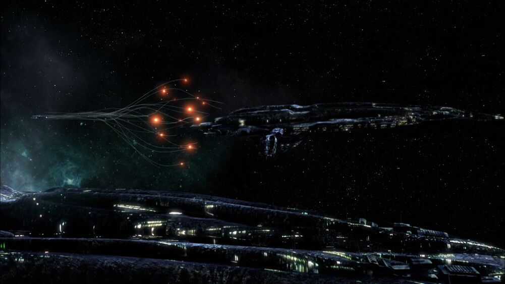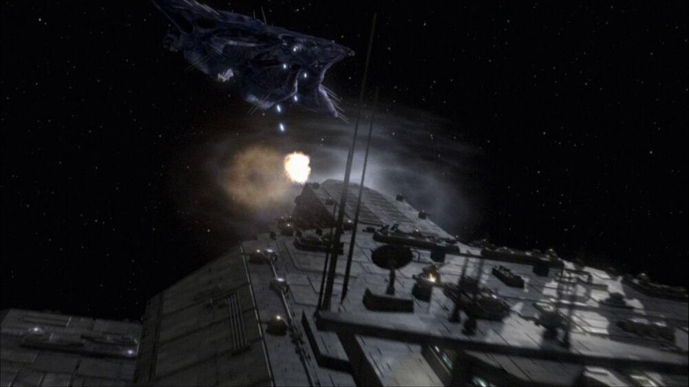Au moment où le Jumper de l'équipe du colonel Sheppard fut endommagé par un tir énergétique, le Dédale fit alors barrage pour absorber les autres décharges, et son équipage fit alors feu sur la super ruche à l'aide de ses rayons asgards, n'infligeant que des dégâts minimes au vaisseau ennemi. Alors que le colonel Caldwell ordonna d'armer les missiles, le major Marks capta d'importants relevés d'énergie provenant de l'appareil ennemi qui riposta avec une puissante salve de tirs énergétiques, endommageant gravement le vaisseau terrien. Néanmoins, au cours de la bataille, les Wraiths, à bord de la ruche modifiée, captèrent une transmission subspatiale provenant d'une réalité alternative contenant les coordonnées de la Terre et décidèrent d'abandonner le combat pour mettre le cap vers cette dernière en hyperespace.