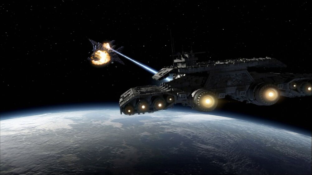 Plus tard, au cours de l'année 2008, il fut équipé de puissants rayons à plasma asgards capables de provoquer des fluctuations énergétiques suffisantes pour traverser les boucliers des vaisseaux-mères de classe Aurore asurans, ou les vaisseaux-ruches, et les détruire complètement au bout de plusieurs tirs rapprochés.
