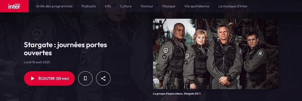 Lundi 18 Août dernier, l'émission Blockbusters de France Inter avait comme thème la saga Stargate. Une heure de discussions autour de notre franchise préférée à une heure de grande écoute, sur la radio la plus écoutée de France ! Retour sur cette émission spéciale et comment elle a été vécue par ceux qui y ont participé !