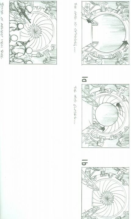 Cependant, le concept art n'est pas à confondre avec le storyboard, ou scénarimage en français, qui est un document utilisé dans le cinéma afin de planifier les besoins de l'ensemble des plans qui constitueront le film, aussi bien au niveau technique (cadrages, mouvements de caméra, effets spéciaux) qu'au niveau artistique (décors construits, ou virtuels). Néanmoins, vous pourrez retrouver plusieurs pages de storyboard parmi les artworks sur notre site, et plus particulièrement pour l'épisode IA de Stargate Atlantis.