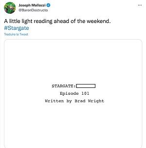 Courant 2022, nous en avons également appris plus sur le désormais avorté projet de Brad Wright. Ce projet, canon à l'univers que l'on connaît et que Brad a largement contribué à construire, nous avait été révélé dès 2021. Sur commande de la MGM, le scénariste de la saga avait écrit un script pour l'épisode pilote d'une future série SG. Révélée dans un post envoyé sur les réseaux sociaux par son ami Joseph Mallozzi, la page de garde de ce script avait suscité l'espoir chez tous les gaters !