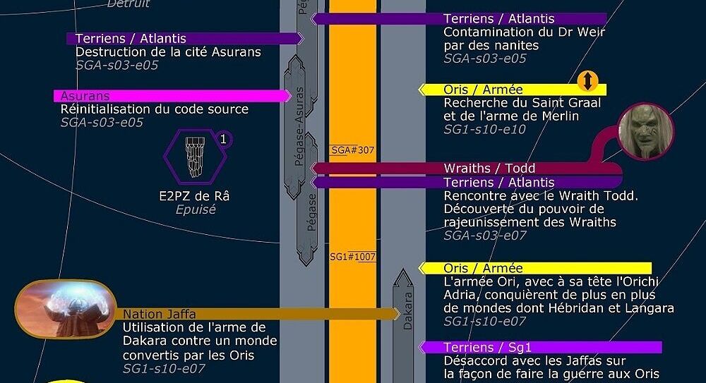 C'est pourquoi, depuis 2016, un projet collaboratif a été lancé par Irmin, membre de l'équipe de Stargate-Fusion, avec comme but de rassembler, en un seul lieu, l'ensemble des éléments chronologiques évoqués dans la saga Stargate. C'est une véritable base de données qui a finalement pu être construite par plusieurs membres de notre communauté.