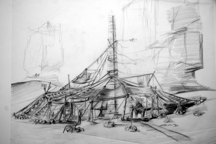 C'est à partir de ses dessins et de ses croquis que les équipes techniques ont pu commencer à concevoir les décors, les costumes, les accessoires ou les maquettes du monde extra-terrestre d'Abydos. Il a été le lien entre la vision artistique du projet initial et sa réalisation technique.