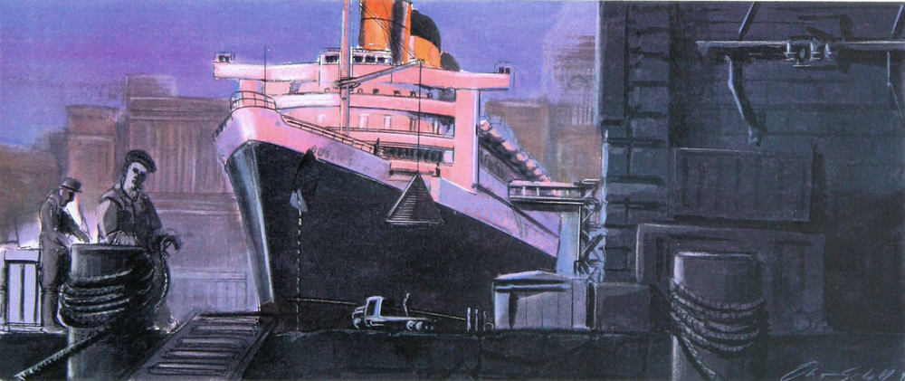 Une autre scène dessinée pas Scholl, mais non retenue lors du tournage, peut nous faire penser au chargement (ou au déchargement) de la porte des étoiles sur un navire.