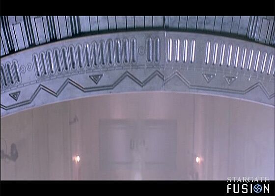 Anomalie plus connue, lorsque nous découvrons la porte au SGC, nous avons une magnifique vue par l'arrière de cette dernière. Même si la scène est visuellement très aboutie et produit son effet, en regardant attentivement la porte, nous pouvons voir la jointure des deux parties qui la compose.