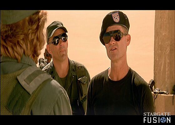 Lorsque l'équipe arrive sur Abydos, tous utilisent des lunettes de soleil. Ce qui est bien pour se protéger du soleil de la planète. Mais les verres teintés ont l'inconvénient de refléter ce que voit celui qui porte les lunettes.