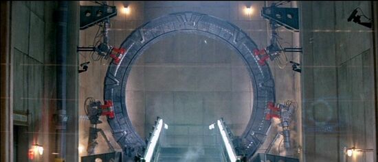 Nous ne savons pas si celle-ci et la porte des étoiles du SGC, dans Stargate SG-1, ont été réalisées à partir d'un même modèle, ou si la porte de SG-1 a emprunté certaines pièces à la porte du film. Il est toutefois très probable que les deux techniques aient été utilisées. Toujours est-t-il que les deux portes des étoiles sont très similaires.