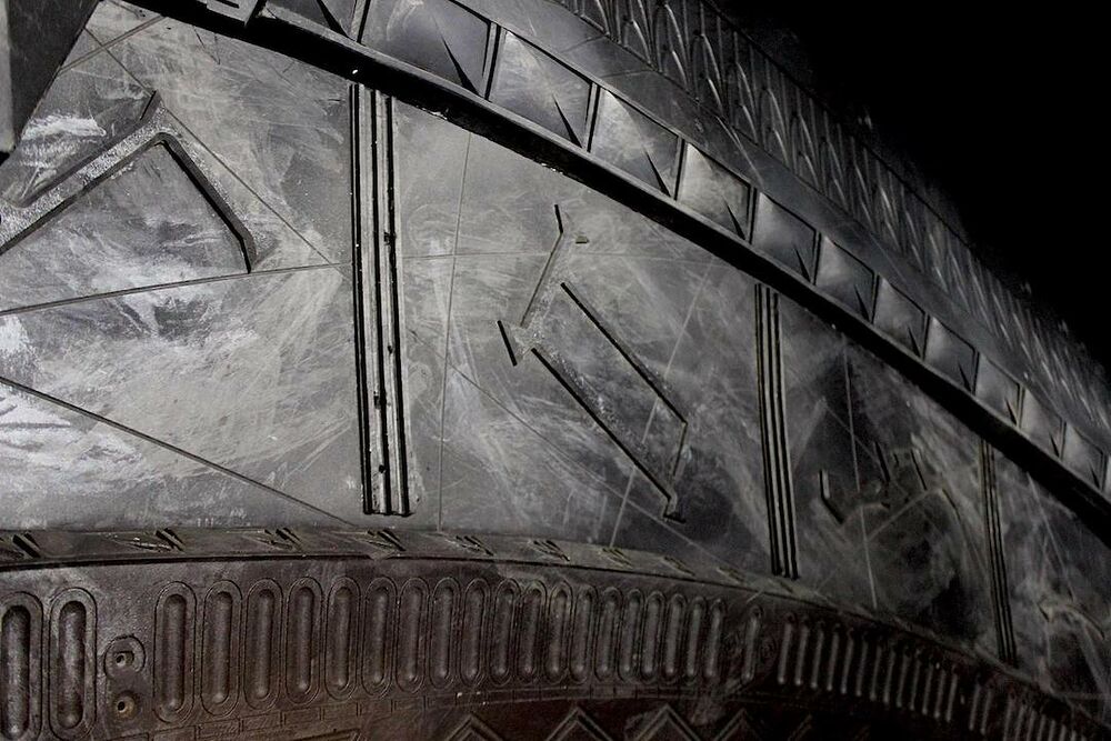 La porte fait environ six mètres de diamètre. Elle est faite principalement de pièces en résine et fibre de verre moulées dans des moules en silicone. Les panneaux sont montés sur un squelette en bois, lui-même fixé sur une armature en aluminium. Le poids avoisine les 600kg pour le moment.