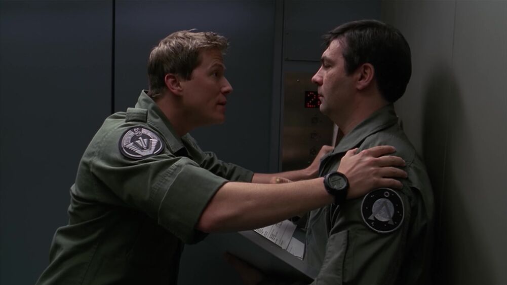 Dans une célébre séquence de l'épisode "Les doubles robotiques", les androïdes à l'image des membres de l'équipe SG-1 sont conduits à l'infirmerie du SGC et le docteur Fraiser réalisent avec stupeur que le coeur du colonel O'Neill ne bat pas. Celui-ci décide alors de s'ouvrir l'avant-bras avec un scalpel et découvre avec horreur qu'il est devenu une machine.