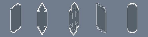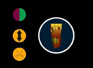 Sur les colonnes grises, on peut trouver des blocs qui donnent des indications suplémentaires sur les lieux où les événements se produisent : galaxie, planète, vaisseau, ... Les blocs ont des formes différentes qui permettent de préciser de quelle série est issu l'événement qui s'y ratache. De gauche à droite :