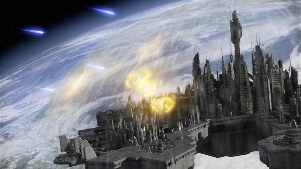 C'est alors que la cité sœur serait apparue. Atlantis aurait attaqué la première en lançant ses Jumpers et ses drones suivis de près par leur adversaire qui aurait répondu de la même manière. "Ça aurait été la bataille la plus épique de l'histoire de Stargate" nous dit Mallozzi.