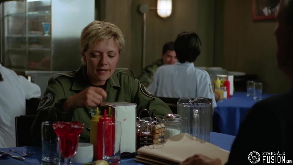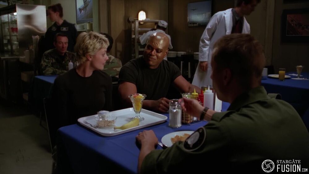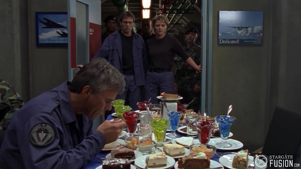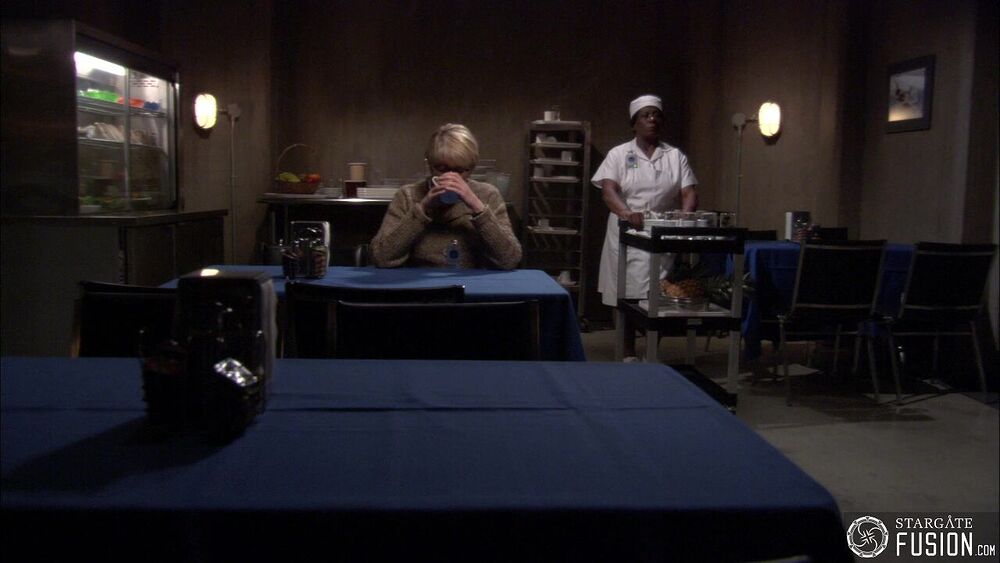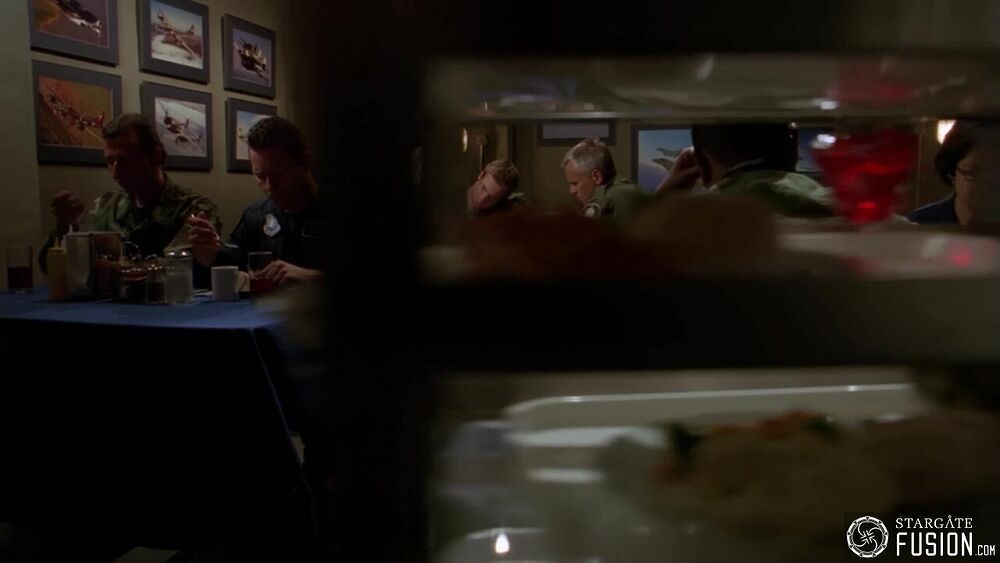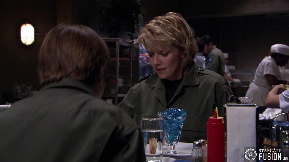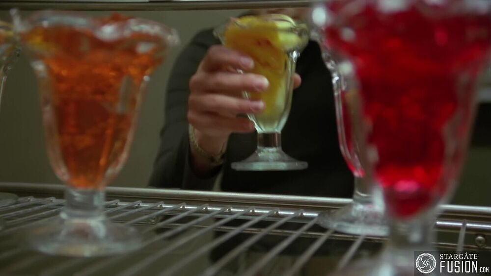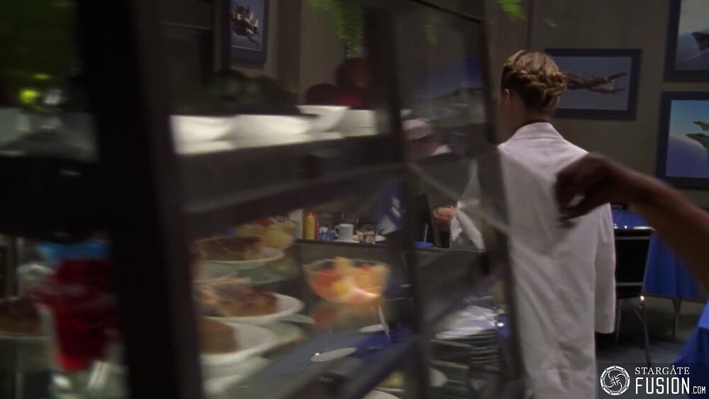 La Sam alternative est au mess du SGC. À sa droite, on peut apercevoir une vitrine proposant des coupes de gelée. Plus tard dans l'épisode, rejoint par Daniel, on peut la voir en train de déguster l'une de ces coupes.
