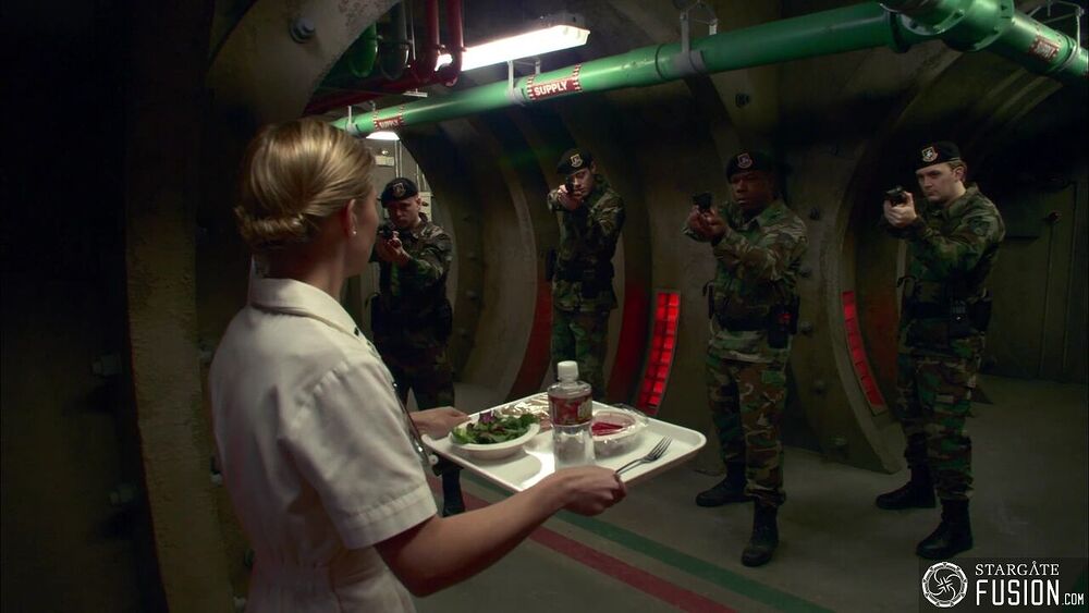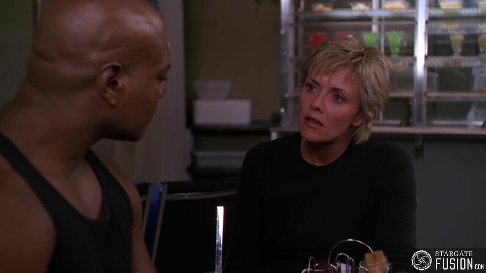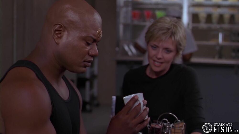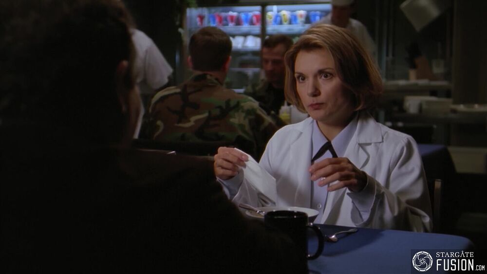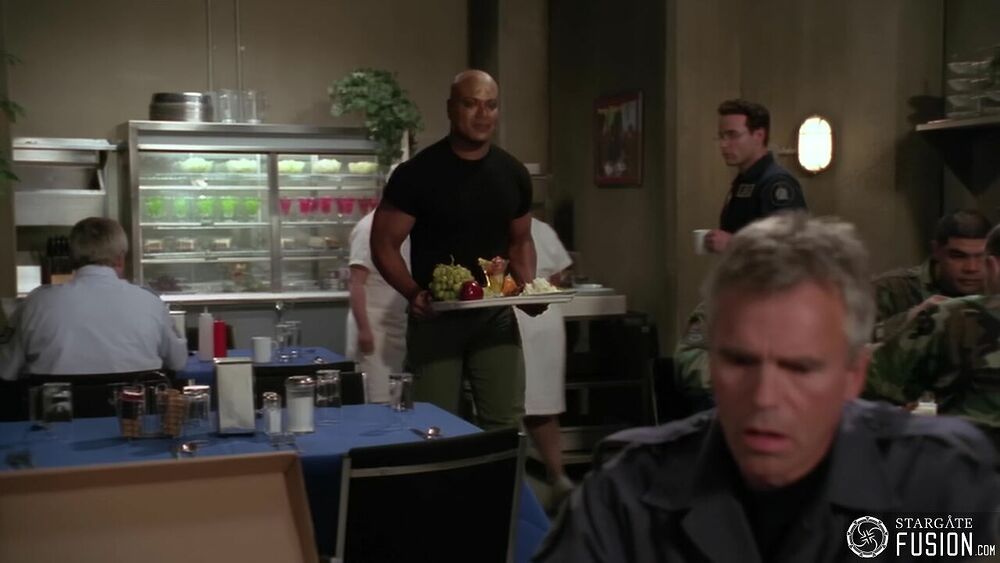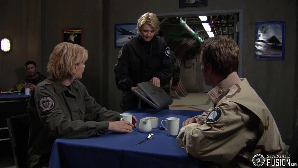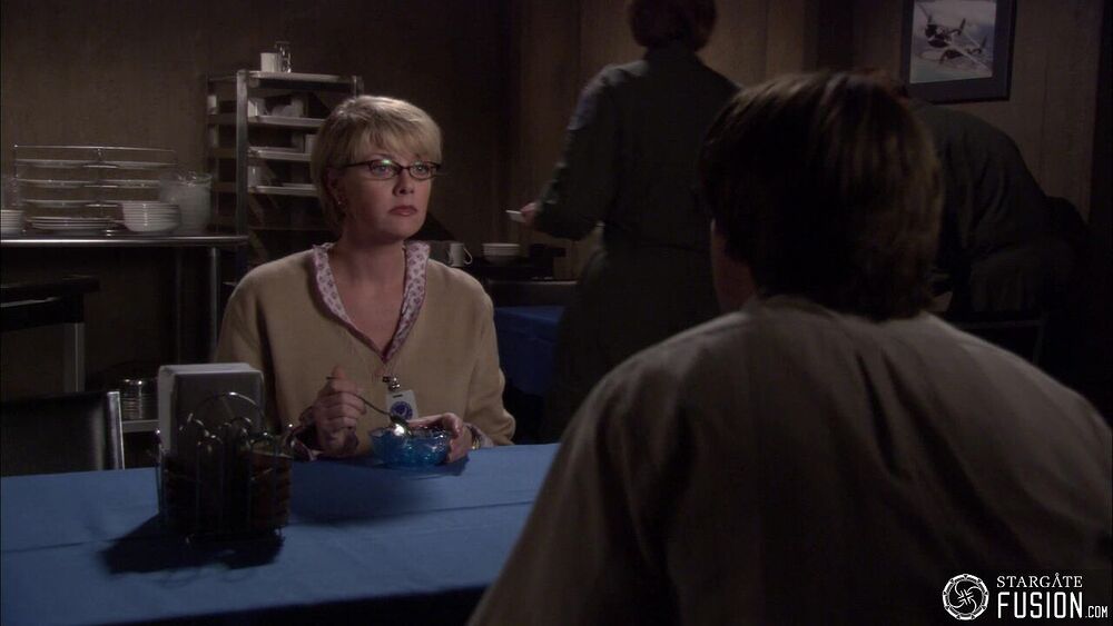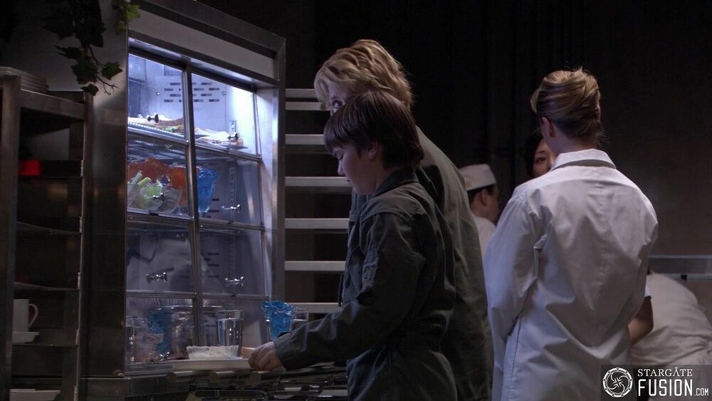 La Sam alternative est au mess du SGC. À sa droite, on peut apercevoir une vitrine proposant des coupes de gelée. Plus tard dans l'épisode, rejoint par Daniel, on peut la voir en train de déguster l'une de ces coupes.