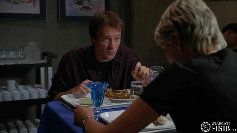 De nouveau au mess du SGC, Sam prend une gelée bien méritée pour son repas en tête-à-tête avec McKay !