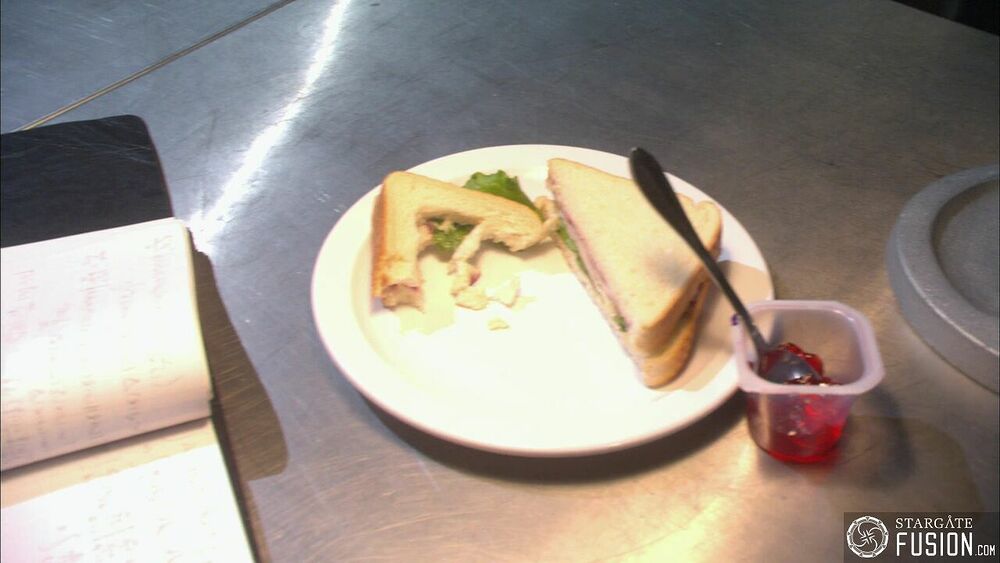 Alors que nos héros font une pause dans leurs recherches pour retrouver Teyla, le Dr McKay reprend des forces en se restaurant au mess. Comme à son habitude, Rodney a pris de la gelée colorée dans son plateau mais Ronon et John semble peu envieux de son repas ...