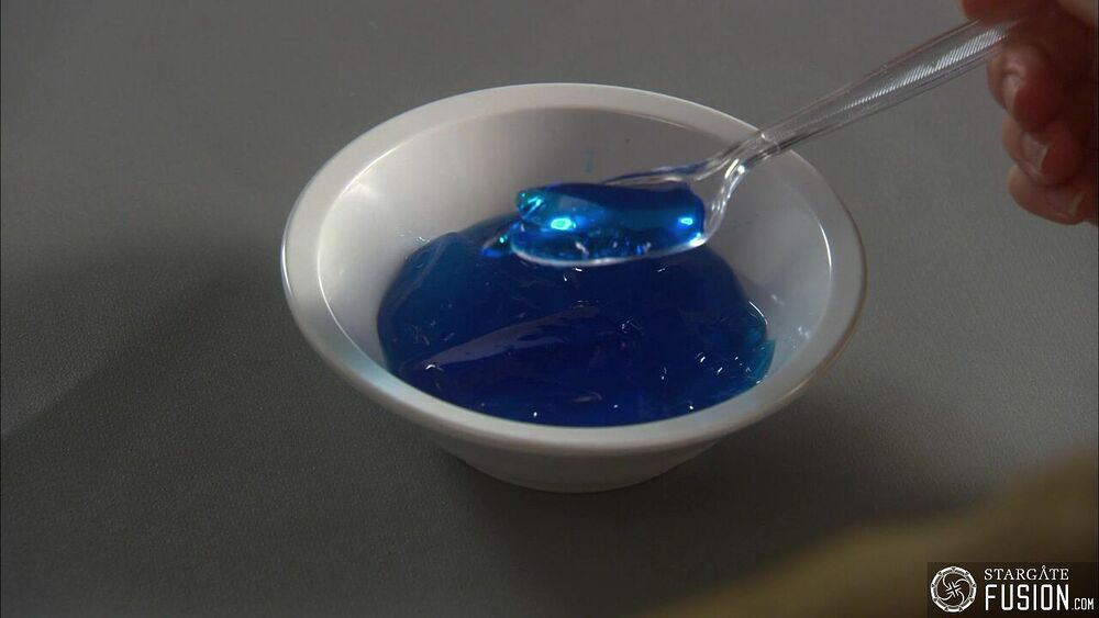 Dans Stargate Atlantis, les gelées se font plus discrètes, mais on peut quand même en apercevoir quelques-unes avec ici Ronon qui redécouvre la civilisation. Dans son plateau, ainsi que dans celui de Sheppard, on peut y voir la traditionnelle gelée colorée. À manger aussi avec les doigts !