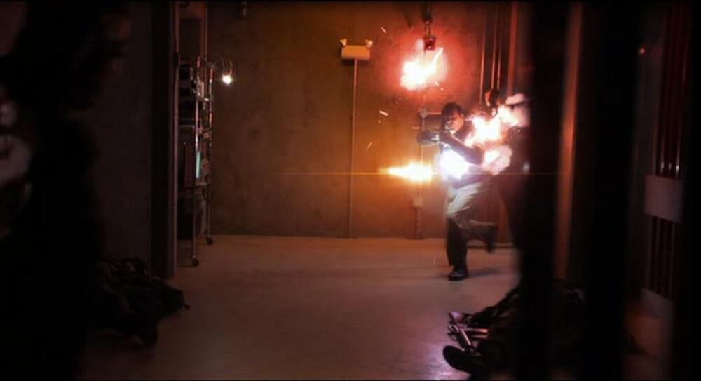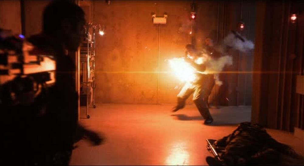 Afin de montrer au journaliste Emmett Bregman la résistance exceptionnel de leurs gilet par balle contre les arme à énergie jaffa, le Dr Lee lui propose de faire une démonstration. Bien évidemment, c'est le sergent Siler qui est désigné pour faire le cobaye et Teal'c pour manier l'arme. Suite au tir à bout portant, le sergent se retrouve en feu, projeté au font de la pièce !