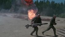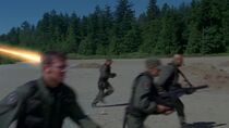 L'équipe fut alors contrainte de se replier vers la porte des étoiles sous le feu de deux planeurs de la mort goa'ulds. Arrivé à la porte, Daniel composa les coordonnées de la Terre et un vortex se forma. Alors que ce dernier traversa l'horizon des événements, suivi par le major Carter, le colonel O'Neill et Teal'c furent témoins de l'arrivée de Tanith à bord de son Al'Kesh se dirigeant vers leur position. O'Neill traversa à son tour la porte des étoiles tandis que Teal'c utilisa son canon énergétique pour détruire le Pel'tak du bombardier goa'uld, tuant Tanith par la même occasion. Cependant, alors que Teal'c s'élançait dans l'horizon des événements, l'Al'Kesh s'écrasa sur le panneau de commande de la porte, coupant prématurément le vortex.