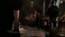 Cependant, Eggar ayant lu dans l'esprit du colonel O'Neill que ce dernier envisageait de tuer Nirrti, il emprisonna Teal'c et Jonas dans des cellules situées dans les souterrains de la forteresse avec l'aide de Wodan afin de les empêcher de nuire à leur déesse. Lorsque cette dernière revint sur P3X-367, elle neutralisa le colonel Evanov et le major Carter à l'aide de son dispositif de camouflage optique et d'un Zat'nik'tel. Puis elle força O'Neill à déposer les armes en menaçant de tuer Carter avant de l'emprisonner avec les autres membres de son équipe dans les souterrains de la forteresse.