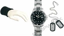 Des objets de la collection personnelle de John Sheppard, portés par l'acteur Joe Flanigan dans Stargate Atlantis. Cet ensemble comprend des plaques de chien, la montre de héros de Sheppard et un bracelet.