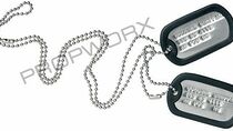 Jeu de deux étiquettes militaires en métal de production avec silencieux en caoutchouc noir sur deux chaînes de perles avec fermoirs, les deux étiquettes sont imprimées avec des informations Sheppard, les deux étiquettes mesurent environ. 2 po x 1,25 po, les chaînes mesurent environ 24 po et 4 po de long. Montre bracelet en métal argenté avec bracelet en métal argenté, la fonctionnalité n'est pas vérifiée, mesure env. 1.75in x 3.75in x . 75in. Terrycloth noir et élastique bracelet athlétique avec symbole Nike brodé blanc, fabriqué par Nike.