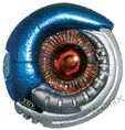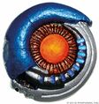 Fabrication en résine prop peint argent et bleu avec des détails orange, avec lentille centrale translucide ambre, pad en néoprène et ruban adhésif bidirectionnel sur le dos. Prop a clignotant ambre et lumières bleues qui sont alimentés par quatre petites batteries externes avec fiche. Piles et fiche inclus. Mesures approx. 1,75 po x . 5 po.