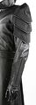 Le gilet est long, composé de plusieurs panneaux de cuir et possède les mêmes fermetures que le manteau sur le devant. Le pantalon porte la mention « taille 35 » et une étiquette portant le nom « Andrew Hein » est fixée à l'intérieur de la ceinture. Deux bandes de tissu texturé créant une forme pointue ornent l'avant des gantelets et un laçage noir a été utilisé pour permettre aux pièces d'être attachées confortablement au bras de l'acteur.