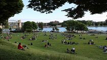 Les pistes de vélo, de marche et de patinage serpentent au-dessus de la plage, menant au parc Stanley dans une direction et à Yaletown dans l'autre. Il y a une zone de laisse au sud du Vancouver Aquatic Centre, un natatorium de taille olympique. C'est un endroit populaire pour regarder les feux d'artifice de Vancouver.